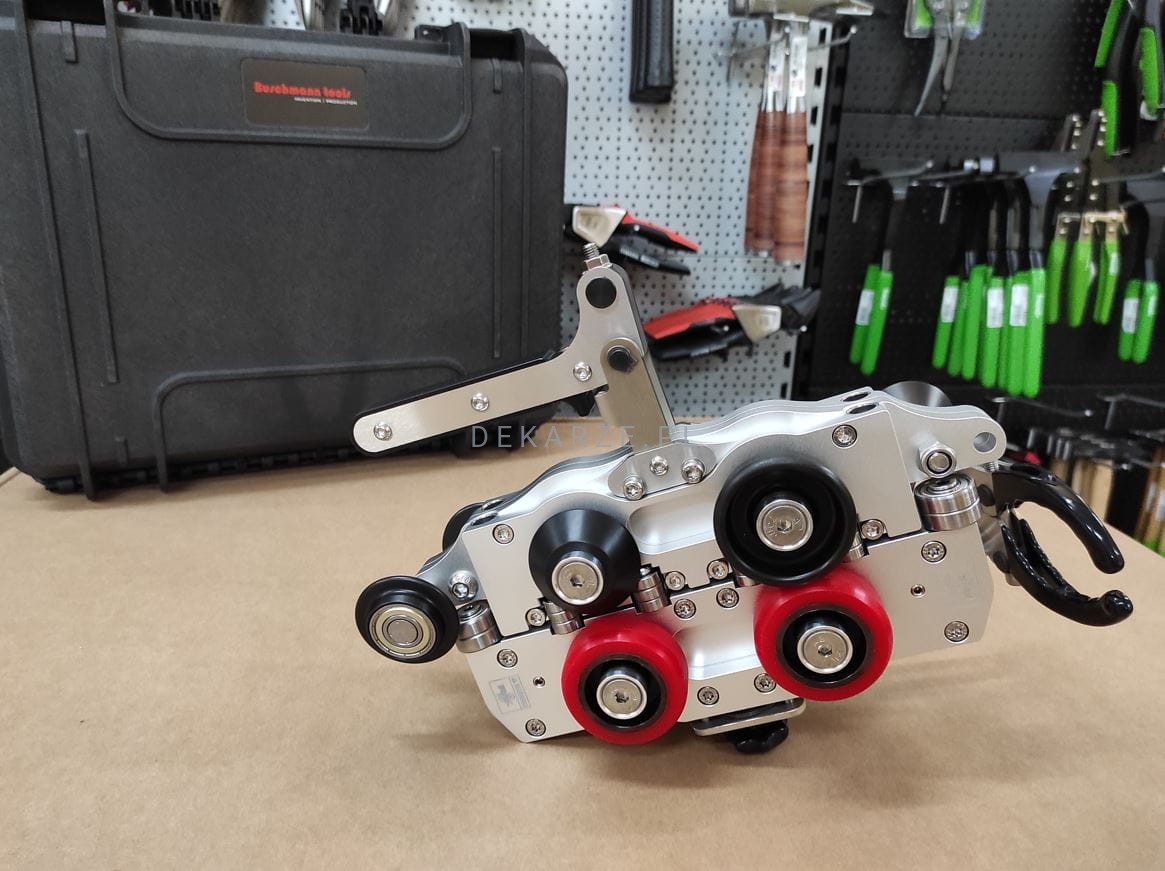 Wystarczy zwolnić dźwignię, odwrócić rolki o 180° i zamknąć dźwignię.
