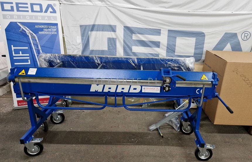 Oznacza to, że tylko firma MAAD ma prawo do tej konstrukcji, która w bardzo znaczy sposób wspomaga wykonywanie obróbek dekarskich. Wąska belka zaginająca o szerokości 15 mm oraz brak napinaczy na belce dociskowej gwarantują wykonanie dużej ilości skomplikowanych obróbek.